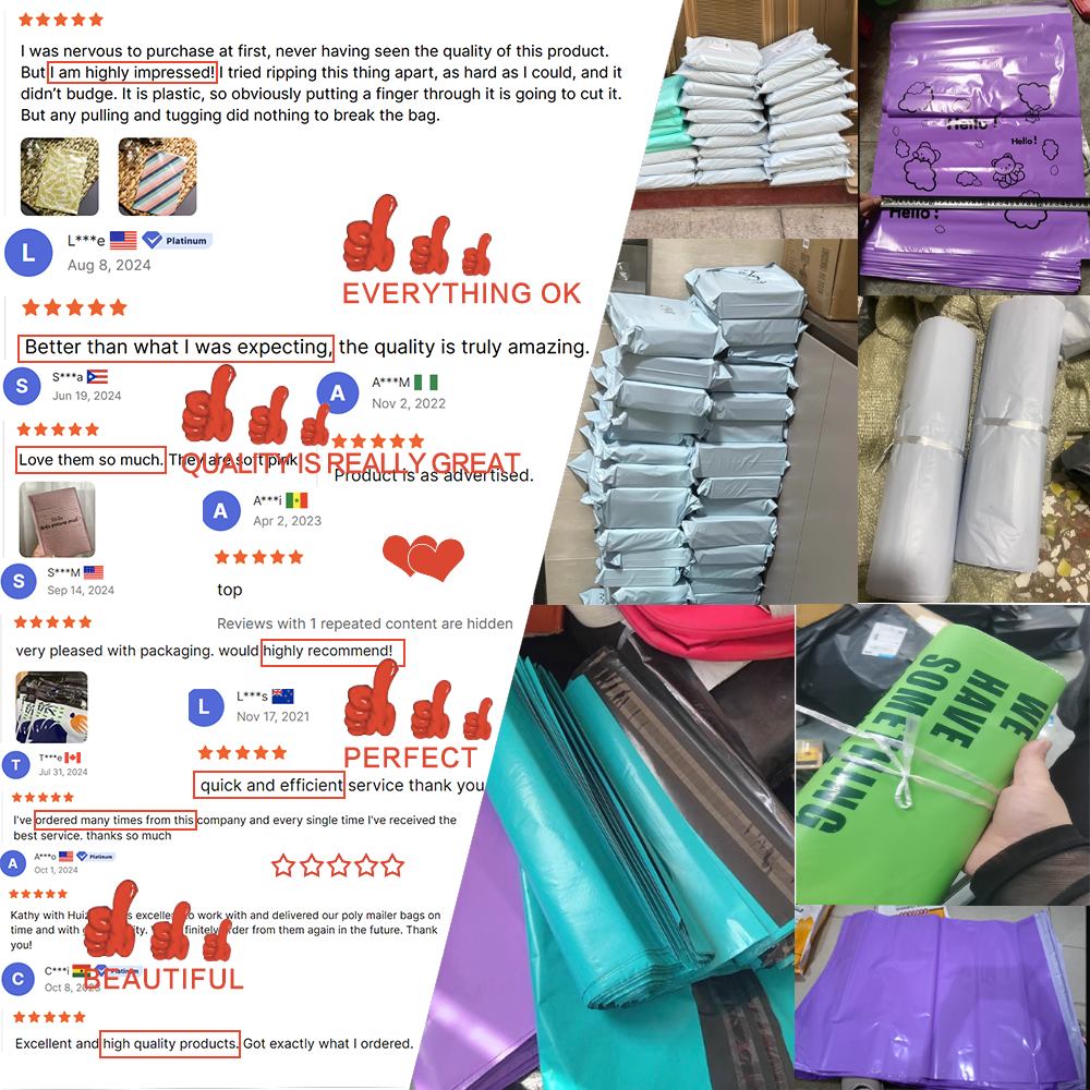 उच्च गुणवत्ता वाले पुनर्नवीनीकरण योग्य पीई सामग्री से बने, हमारे पॉली मेलर बैग जलरोधक, आंसू प्रतिरोधी हैं, और डिलीवरी के दौरान आपके कपड़ों, सहायक उपकरण और ऑनलाइन स्टोर आइटम के लिए बेहतर सुरक्षा प्रदान करते हैं।